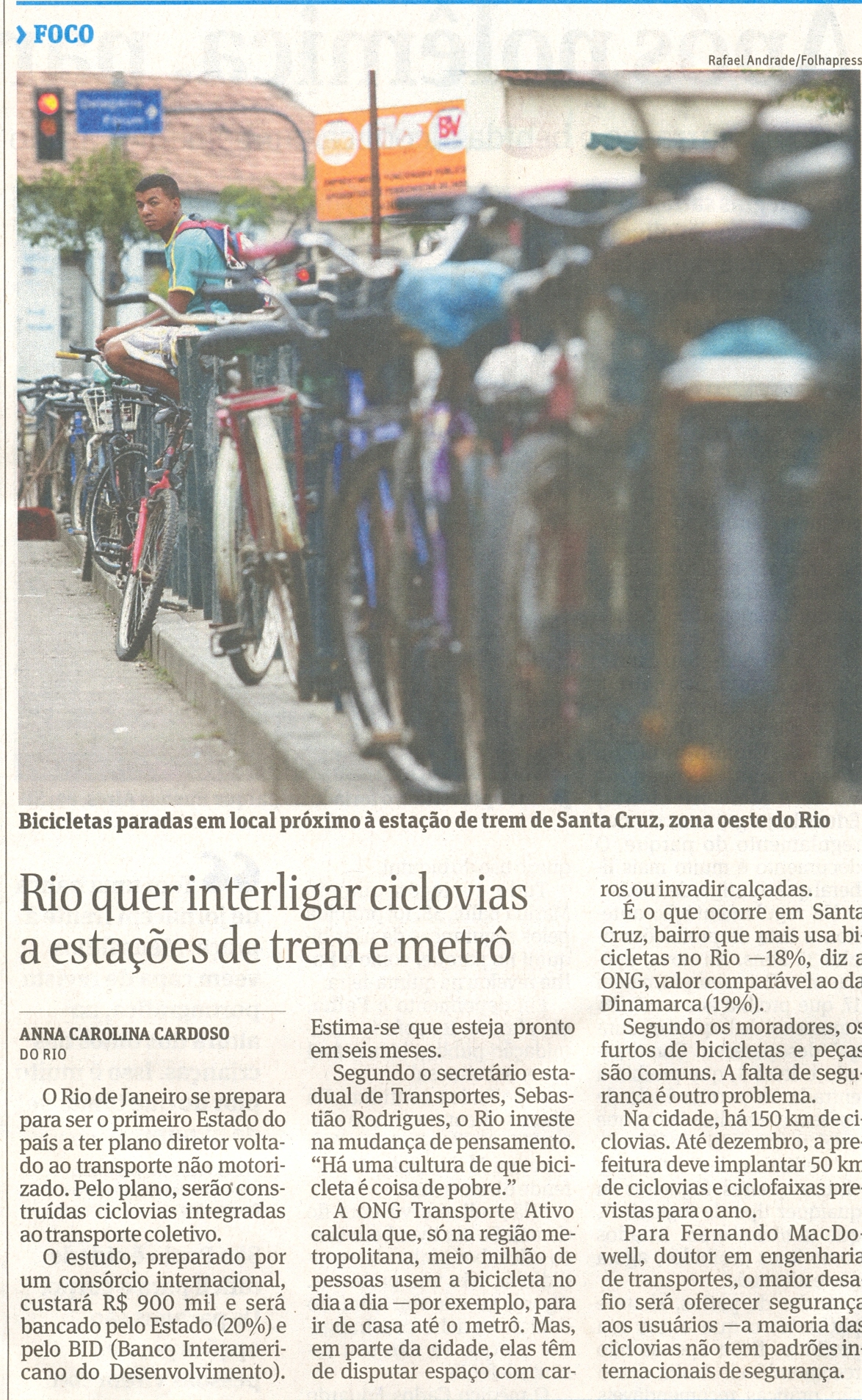 Ciclovias do Rio serão integradas ao metrô, 28 / 08