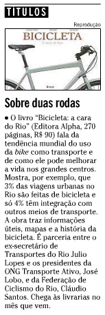 · Jornal O Globo - Zona Sul - Pedaladas em ritmo lento. 22 / 04