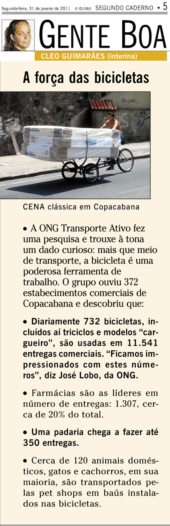 · Jornal O Globo, Pedalando com muito esforço. 18 / 09