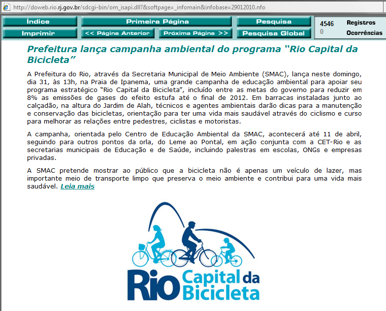"Ciclovias Cariocas". Clique na imagem para conhecer melhor.