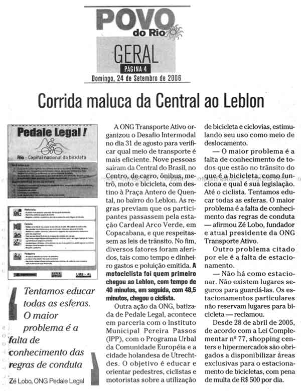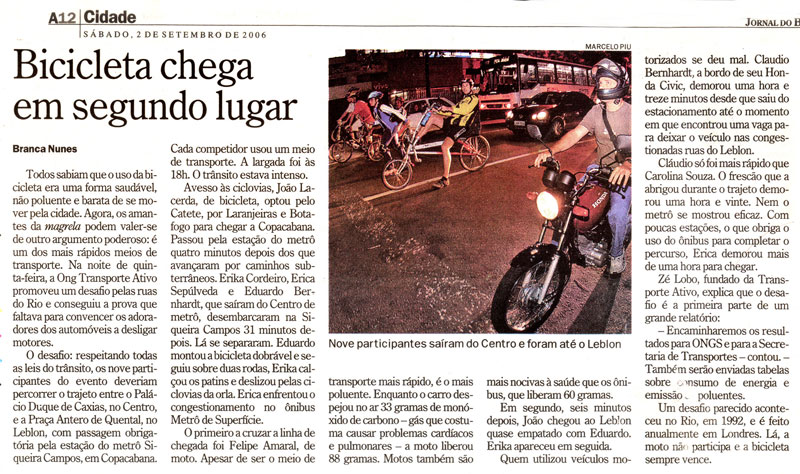 e promoção da bicicleta e do bom uso do espaço urbano.
