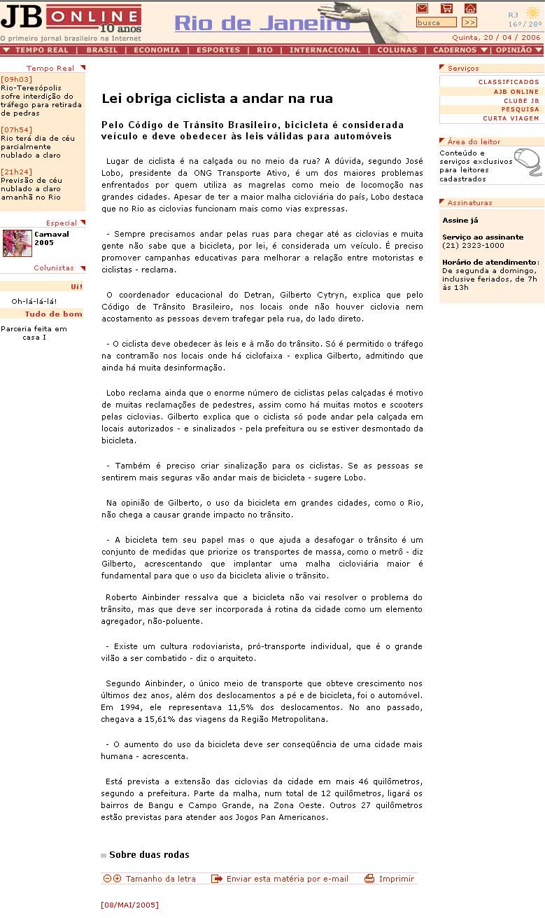 janeiro de 2003, participamos das reuniões do GT Ciclovias da prefeitura
